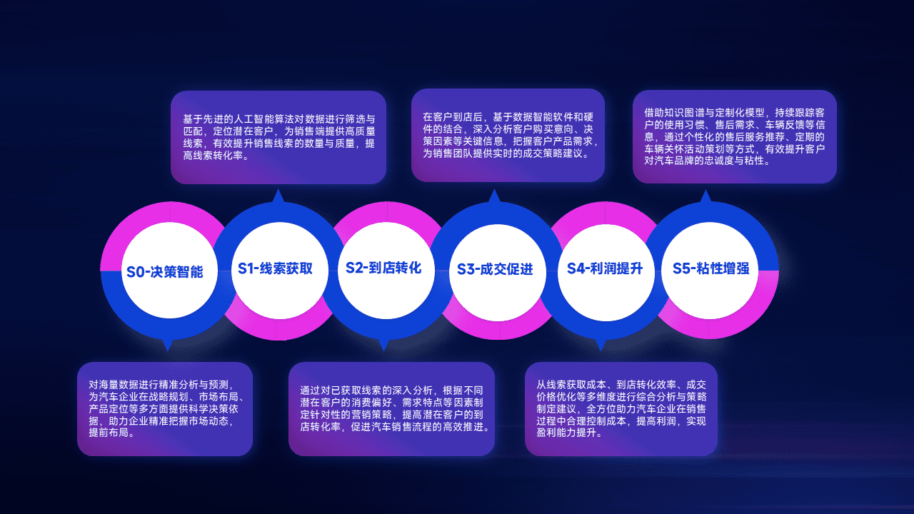 通过拓宽潜在客户来源、、优化线索分配并提高到店转化率,,,,以增强销售效率。。。。同时,,,,利用线索数据不断优化分析模型,,有效提升转化率,,,扩大营销影响力。。